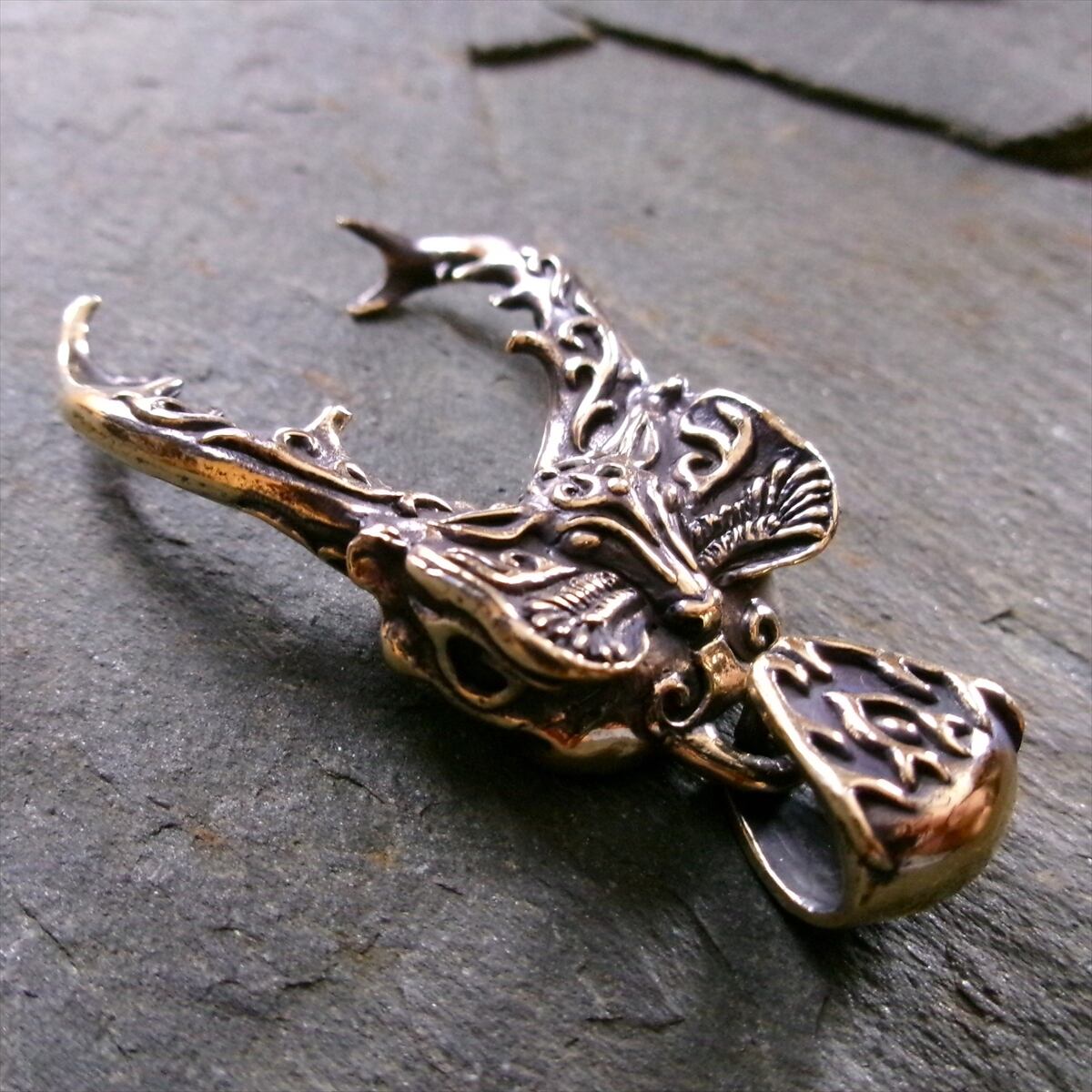 首から下げる向きと逆から見ると、クワガタの顎が鹿の角に見えるようデザインしました。